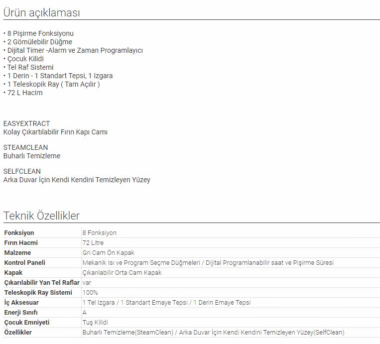 | Pişirme Fonksiyon Sayısı | : | 8 Fonksiyon |
